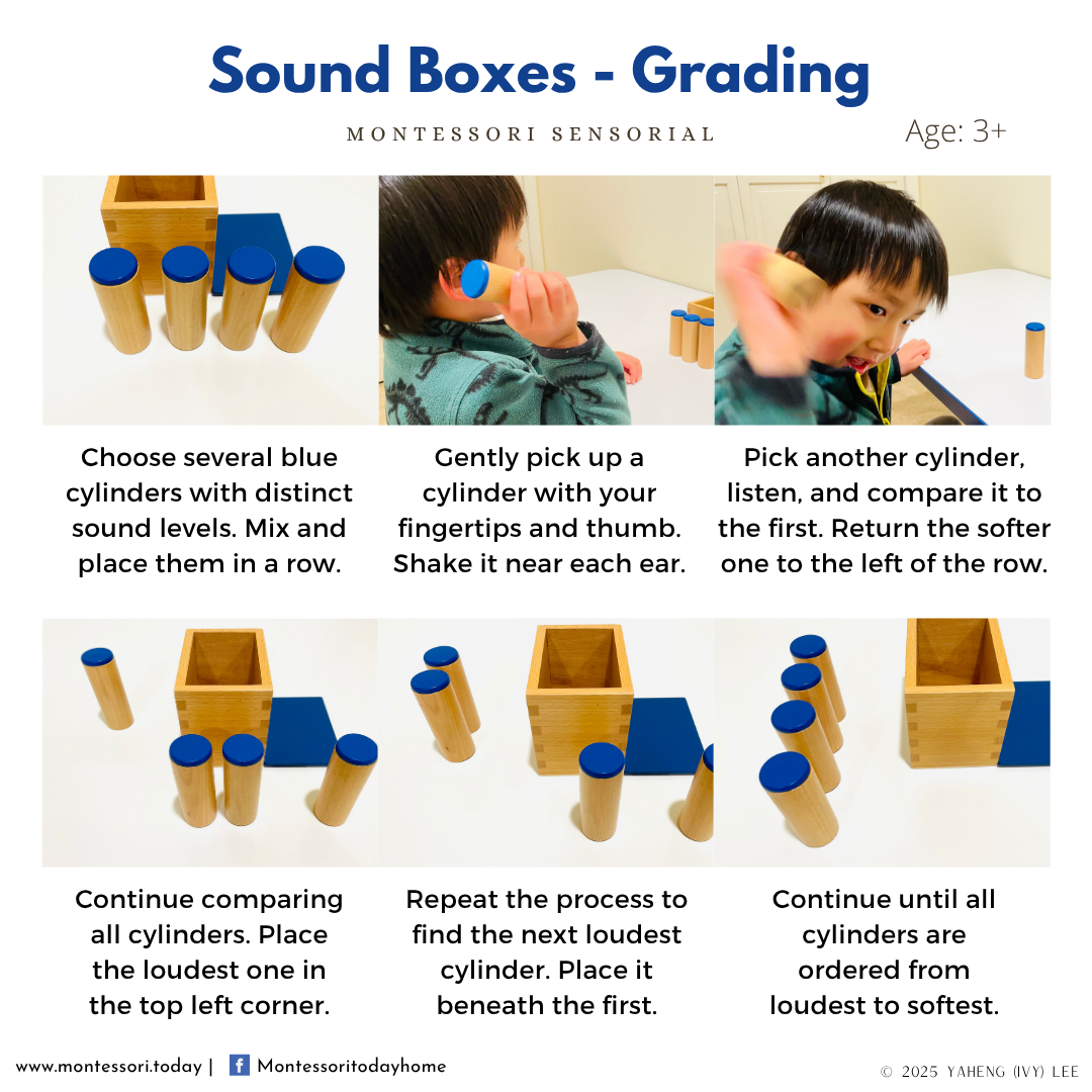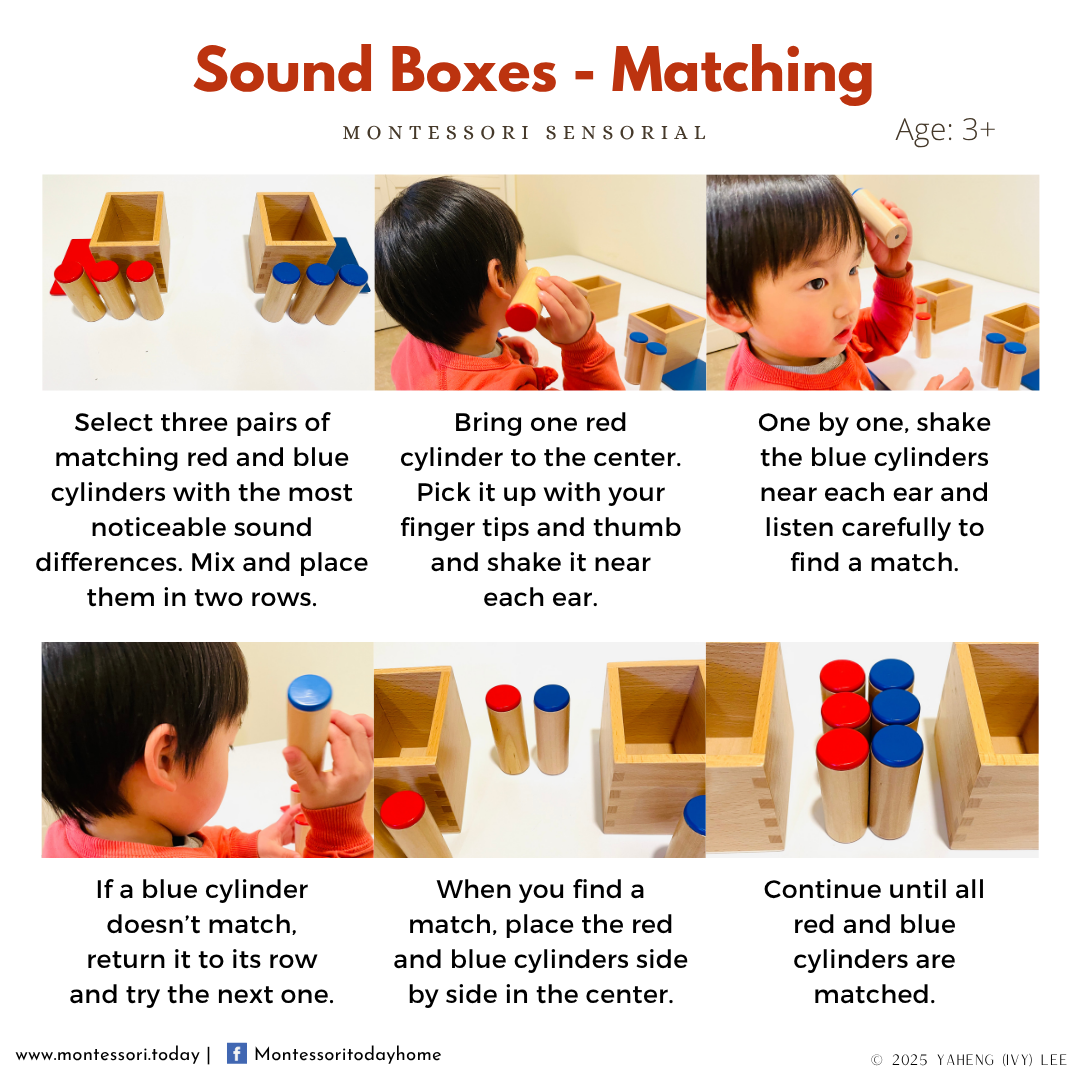 Maria Montessori was a keen observer of children, and she also tried to teach children to become good observers of their environments. Observation skill is key to many vital human activities, such as communication, decision making, and research. In Montessori education, children refine their senses and learn to attend to their environments through sensorial activities that exercise their visual, auditory, tactile, olfactory, and gustatory perception. We hope you enjoy those fun activities with your little ones. We will continue to add more sensorial learning cards, so stay tuned!